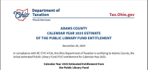 The Ohio Department of Taxation (ODT) posted the September 2024 Public Library Fund (PLF) distribution of $44,451,050 – which is $1.05 million (or + 2.43%) above ODT’s original estimate that was issued in July 2023; and $1.12 million (or + 2.58%) above ODT’s updated estimate issued in December 2023.